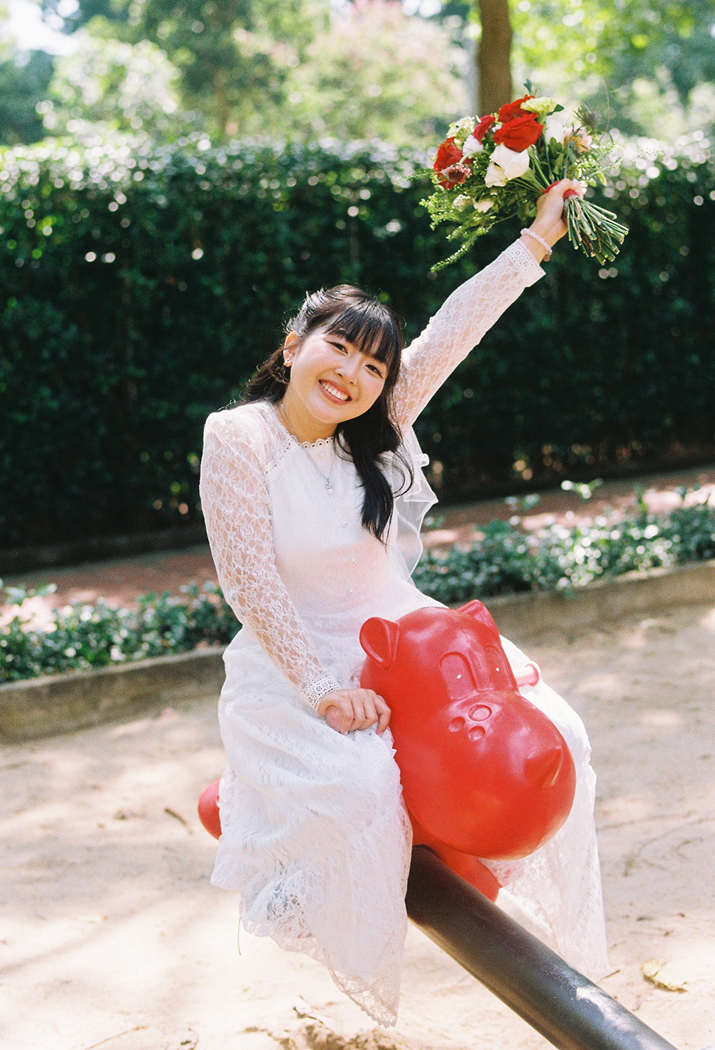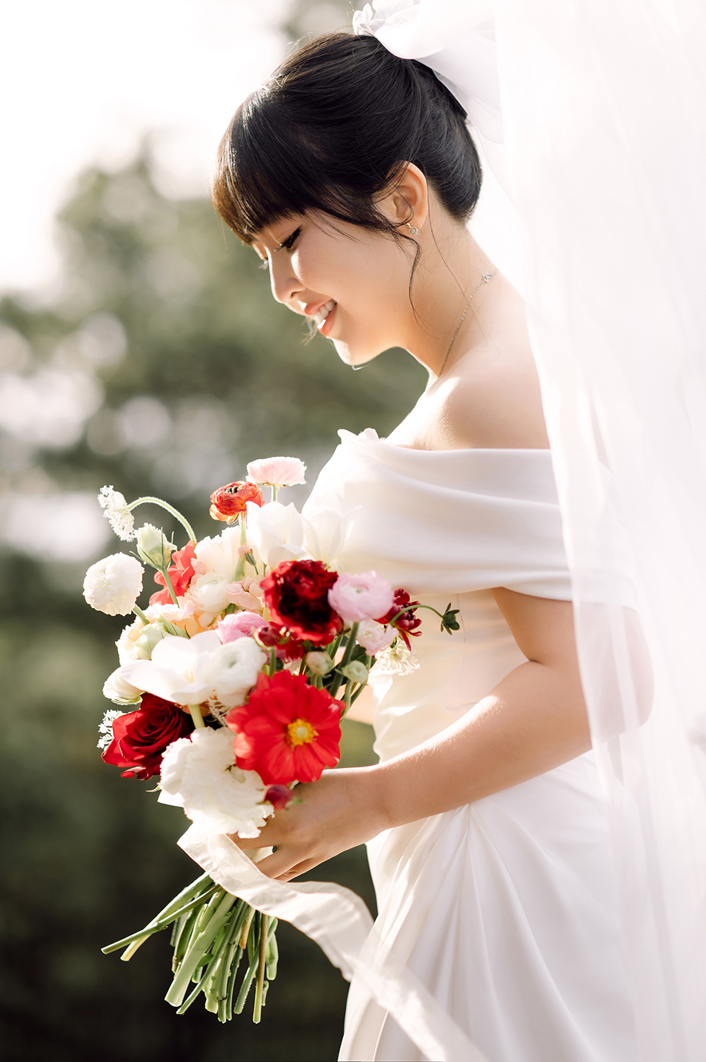 Cô dâu là một nàng truyền thông năng động, luôn mang trong mình niềm đam mê với hình ảnh và câu chuyện. Thích chụp hình, xem anime, say mê làm đồ handmade và tận hưởng những chuyến đi thú vị trong công việc, cô là người luôn nhìn cuộc sống bằng lăng kính đầy màu sắc. Với chiều cao đáng yêu 1m50 và nụ cười luôn rạng rỡ, cô mang đến cảm giác ấm áp và dễ chịu cho những người xung quanh. Dù thích đi đây đó, cô dâu vẫn trân trọng những khoảnh khắc yên bình ở nhà, đặc biệt là khi được ở cạnh người yêu – người luôn khiến cô cảm thấy hạnh phúc và trọn vẹn.
