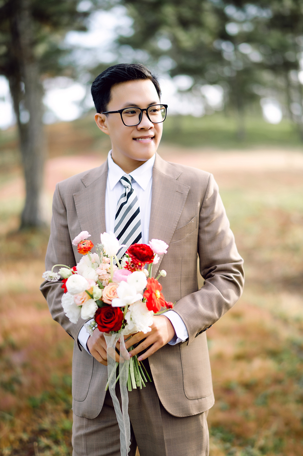 Chú rể là một chàng IT trầm tính, ít nói nhưng chân thành và ấm áp. Dù sống hướng nội, anh luôn biết cách quan tâm, chia sẻ, và mang đến cảm giác an toàn cho người yêu – người cũng là 'sở thích lớn nhất' của anh. Ngoài những giờ làm việc chăm chỉ, chú rể thích dành thời gian chơi game, xem anime, và đôi khi là cùng người yêu trải qua những khoảnh khắc thật yên bình và ý nghĩa tại nhà mà không cần đi đâu xa. Anh chính là người đàn ông giản dị nhưng lại mang trái tim đầy yêu thương dành riêng cho cô dâu của mình.